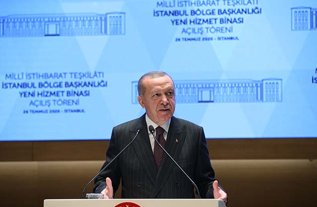 Cumhurbaşkanı Erdoğan, Milli İstihbarat Teşkilatı'nın (MİT) İstanbul Bölge Başkanlığı Hizmet Binası'nın açılışı töreninde konuştu.