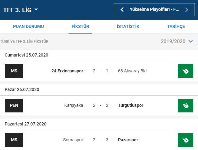 3. LİG 2019-20 SEZONU PLAY-OFF SONUÇLARI