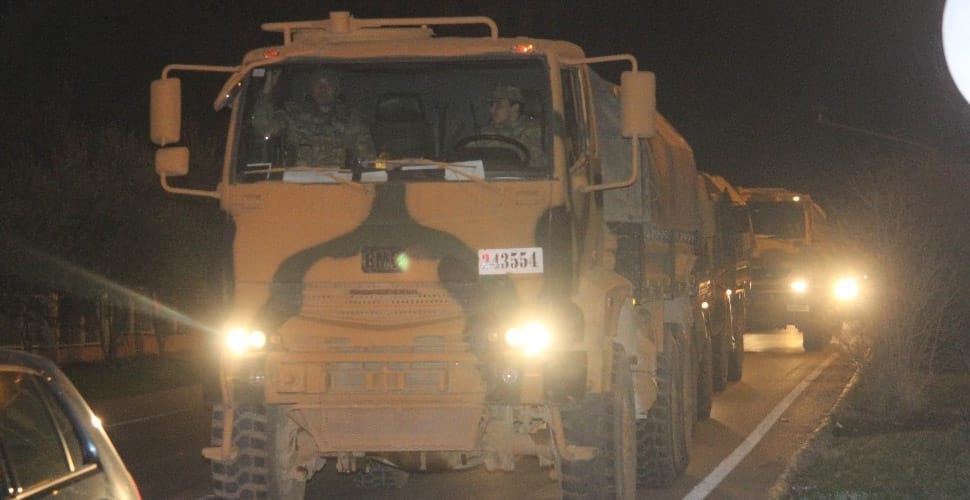 Türkiye'nin farklı birliklerinden gönderilen 5 otobüs komando ile ZPT ve konteynerlerin yer aldığı askeri konvoy Hatay'ın Reyhanlı ilçesine ulaştı.
