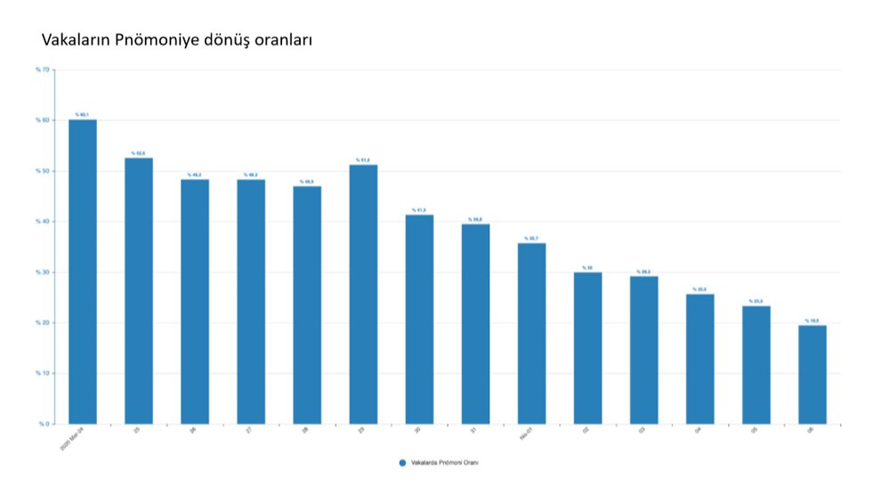 Vakaların zatürreye dönme oranlarında, 24 Mart’tan itibaren bugüne kadar zatürreye dönme olasılığı her geçen gün giderek azalıyor. Bu bizim açımızdan önemli.
