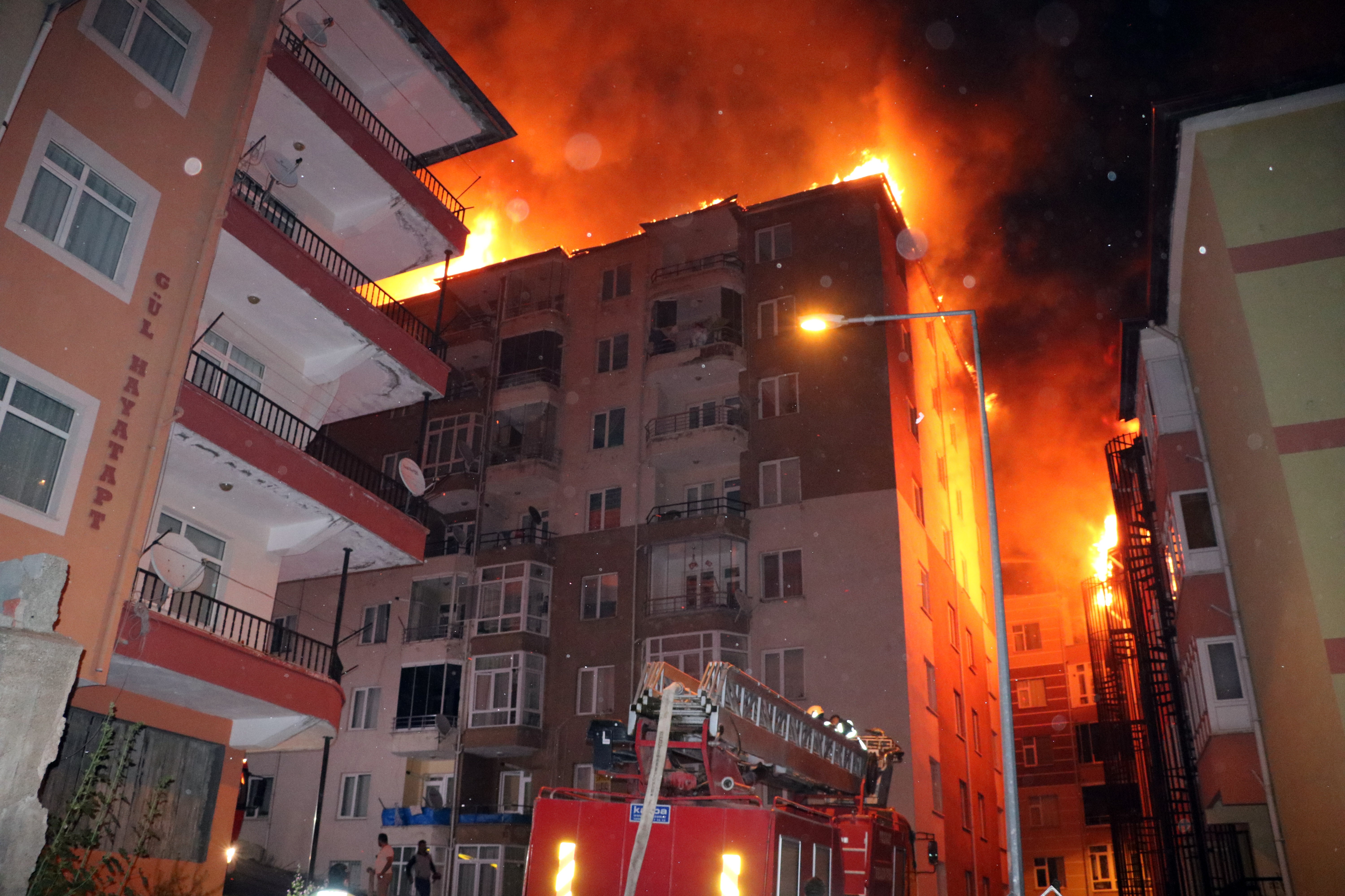 Yozgat’ın Aşağı Nohutlu Mahallesinde 24 daireli Berensu Apartmanının çatısında başlayan yangın kısa sürede büyüyerek yan taraftaki 36 daireli Damla Apartmanının çatısına sıçradı. Metrelerce yüksekliğe ulaşan alevlere Yozgat Belediyesi itfaiye ekipleri müdahale de yetersiz kaldı. Her iki apartmanda büyük çapta maddi hasar meydana geldi. Yangın esnasında her iki apartman sakinleri de tahliye edildi.